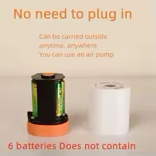Enjoy quick, hassle-free inflation and deflation with this 2-Way Battery Air Pump, powered by 6 AA batteries (not included). Designed for convenience and portability, this compact pump is perfect for vacuum storage bags, air mattresses, pool floats, inflatable toys, camping gear, and more.