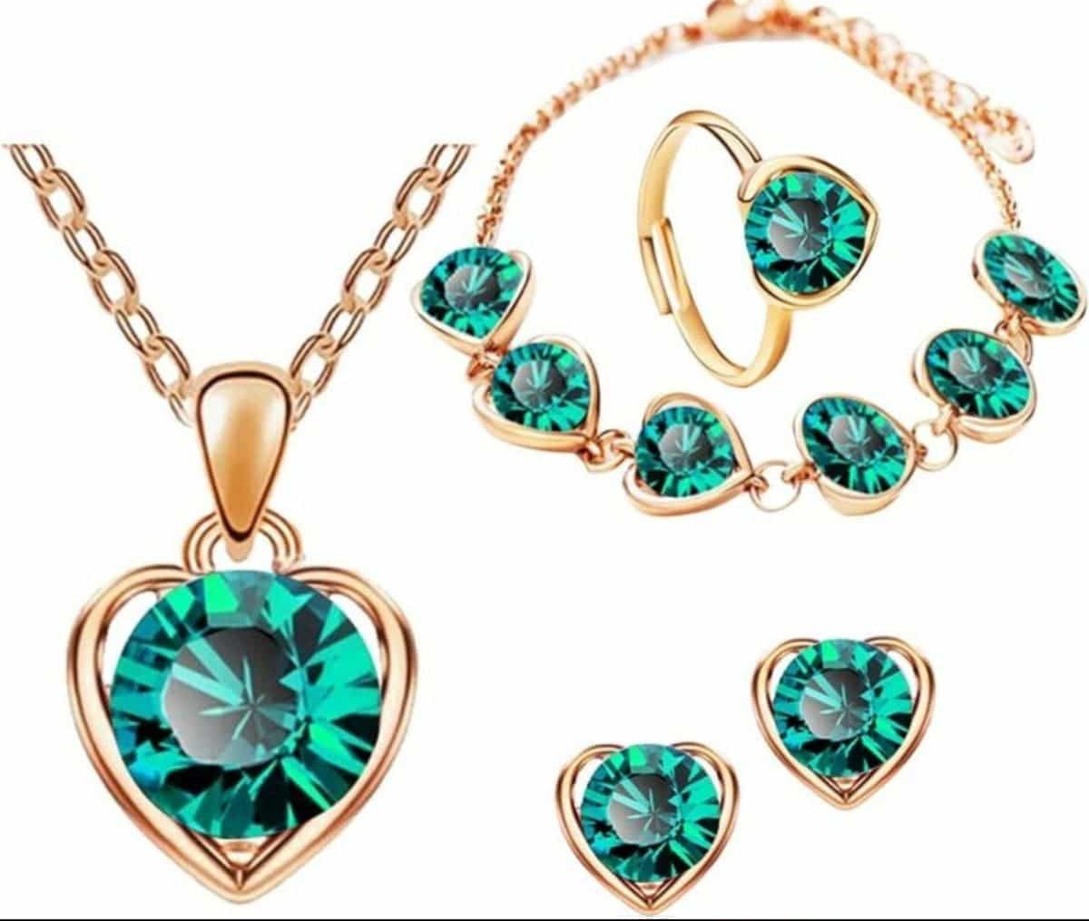 ✔️ Stylish Jewellery Set Included – Comes with a matching necklace, earrings, bracelet, and ring
